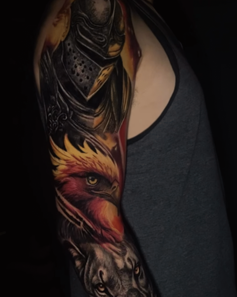 Somos especializados em realismo preto, cinza e colorido, com foco em fechamentos de braço, perna e costas. Aqui, cada projeto é pensado como obra única, respeitando a anatomia, o estilo do cliente e a estética do todo.